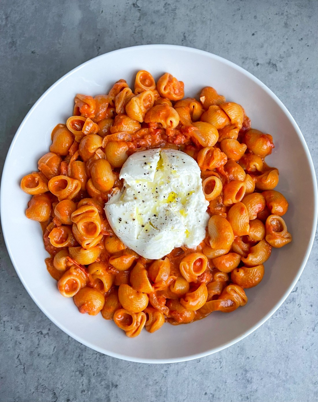 Introducing my husband’s “new favorite pasta dish” AKA my tomato mascarpone sauce with bucatini. This dish is SO good – it’s creamy but still has the base of tomato sauce that I absolutely love. Topped with basil – it might just be MY new favorite pasta dish. Recipe can be found below, enjoy! Ingredients 1/2…