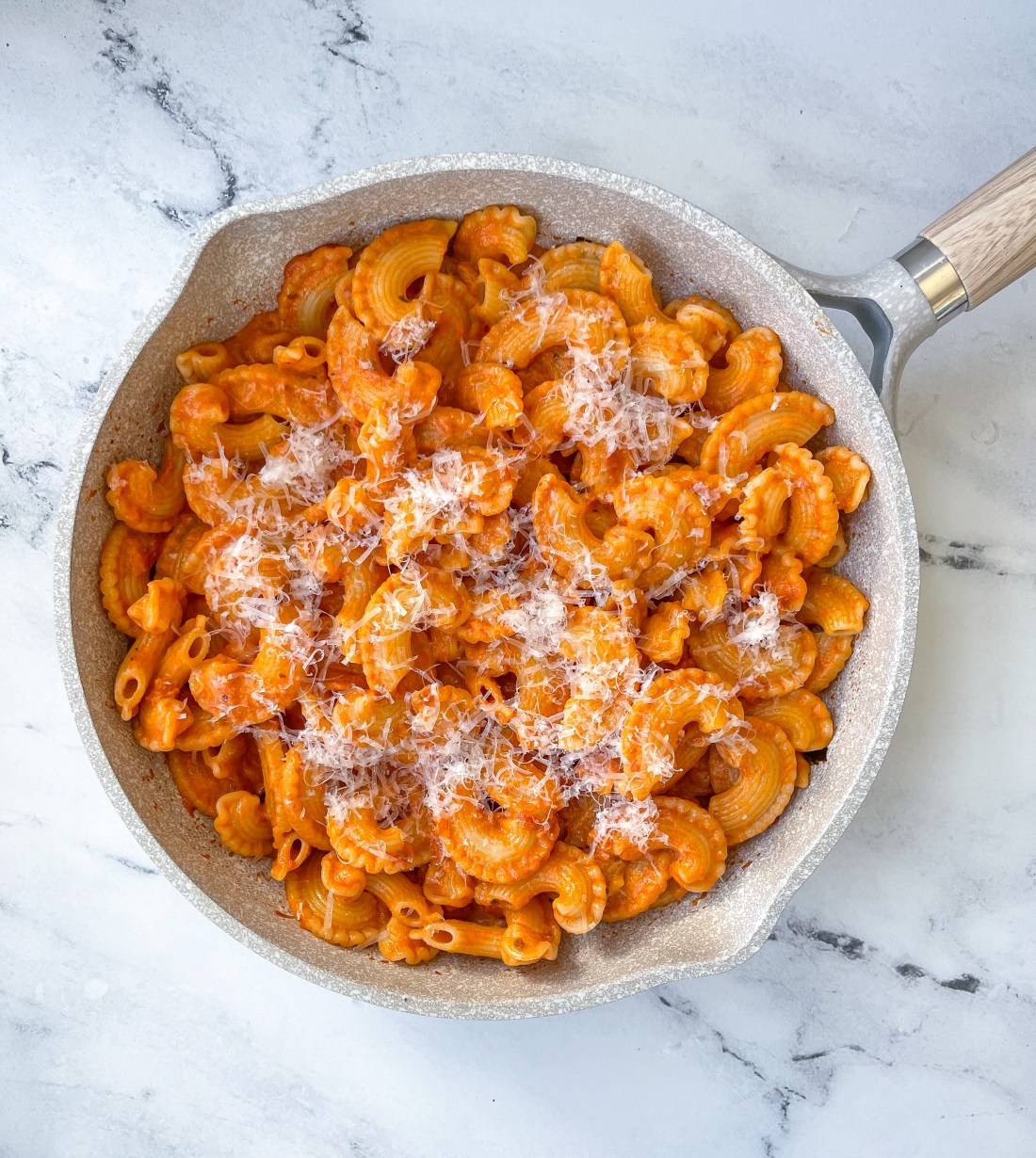 Oh sheet, a recipe with vegetables! Introducing my Sheet Pan Red Pepper Pasta! This savory sauce with a hint of sweetness is the perfect way to add some veggies to your diet. The best part is it takes minimal effort to make (perfect for any new moms out there!!). Throw the veggies on the pan…