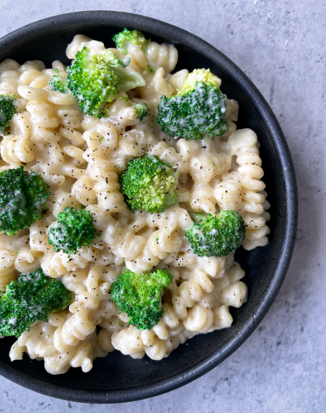 Broccoli cheddar soup, meet my 6 ingredient Mac & cheese. Introducing my creamy broccoli cheddar pasta (with white cheddar!). This dish is so creamy, but lighter than your normal Mac & cheese and of course with added broccoli so you’ve got your daily dose of veggies. Everett has made the switch to real food and we’ve been trying to come up with a variety in our meals we serve him. This dish can be ready in 15-20 minutes and is a perfect meal for yourself or kids!
